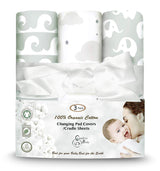 Changing Pad Covers or Cradle Sheets - Gray Elephants, Clouds & Wave Patterns