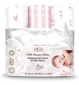 3 Pack Organic Cotton Changing Pad Covers or Cradle Sheet, Baby Girl