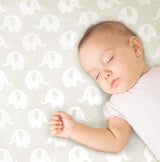 - Elephant and bubble patterns, printed in a pastel, warm gray and white are gender neutral, so blend easily with any nursery environment. Packaged with a beautiful white bow for a lovely gift presentation.