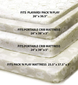 These adorable fitted sheets fit most portable, mini mattresses and playards including those by Pack ‘n Play, Dream on Me, Graco, Hiccapop, and LA Baby. Your baby will love falling asleep on these soft, snuggly sheets.
