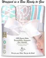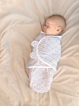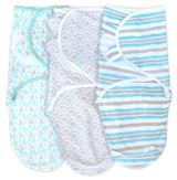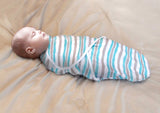 100% Organic Cotton Adjustable Infant Swaddle Wrap - Aqua and Grey Patterns