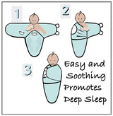 The ultra-soft and comforting swaddle wrap helps your baby sleep through the night by mimicking a feeling of being held or snug in the womb. Hook and loop fasteners hold gently but firmly so infants aren’t woken from startle reflex. The wide lower pockets for baby’s legs help parents quickly and easily change diapers.