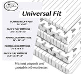 These adorable fitted sheets fit most portable, mini mattresses and playards including those by Pack ‘n Play, Dream on Me, Graco, Hiccapop, and LA Baby. Your baby will love falling asleep on these soft, snuggly sheets.