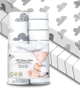 100% Organic Cotton Fitted Sheets for Pack ‘n Play and Other Portable Mini Cribs. 2 pack