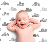 100% Organic Cotton Fitted Sheets - White/Gray Cloud & Stripes Pattern