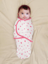 100% Organic Cotton Adjustable Infant Swaddle Wrap - White and Pink Patterns